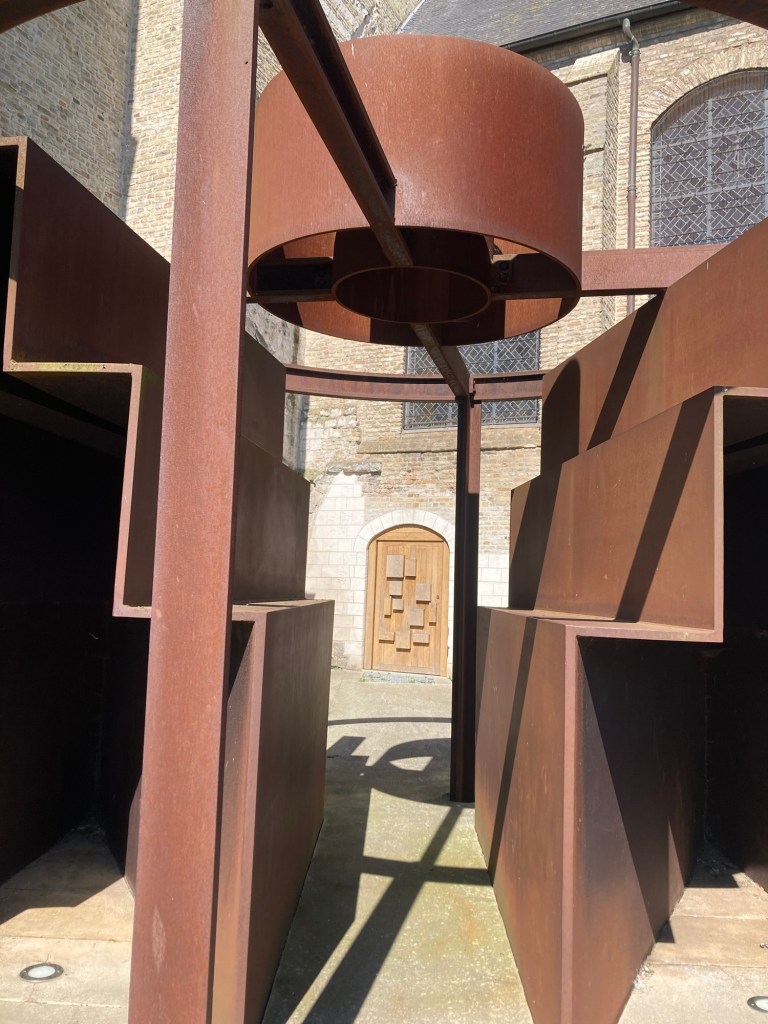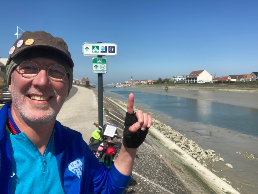 Filer le long du canal. Essor agricole. Passer de droite à gauche du canal. Un silo marqué « la Flandre ». Des pêcheurs mais pas de pêcheuses. Les forteresses Vauban alternent avec les blockhaus du mur de Atlantique. Un blockhaus taillé comme un crayon de 20 m planté de guingois dans la forêt. Des chevaux aux air de Spirit, dans des pâtures entre terre et mer. Des moutons qui semblent avoir déjà trop chaud. Le vent, mon ami. Avant de voir la mer, l’odeur de la marée à l’entrée de l’estran de Grand Fort. L’océan, au bout du canal. Le vent mon ennemi. Le phare aux volutes noires et blanches de Grand Fort. Premiers moutons sur la grande bleue, puis des houles de colza où on pourrait se noyer. À travers les champs de jeunes pousses de blé, des houles et des houles de gris vert au gré du vent. À Mark un Spitfire s’envole vers la Lune dans un grand ciel bleu. Des Bourgeois et un dragon calaisis (Khaleesi?). Au magasin, le vélociste serviable regarde mon petit vélo d’un air entendu mi-sceptique, mi-admiratif. Son collègue, très perplexe, dis simplement… « Et en pédale plates ! ».